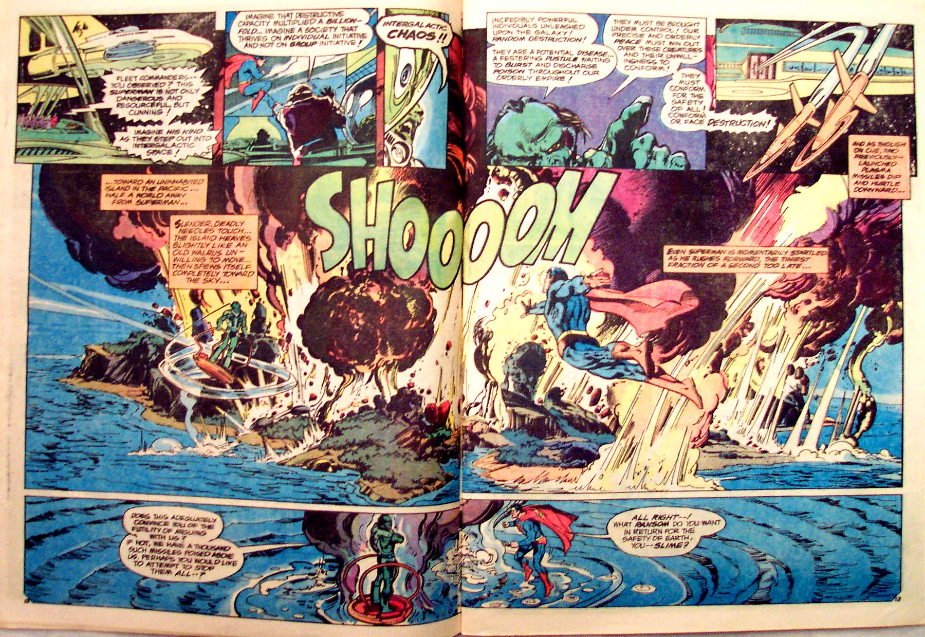 A few issues later, Lex feeds a bunch of data into a machine, which realises Clark Kent is Superman, but Lex thinks that Kent's too much of a weenie to eb Superman, and throws a tantrum.