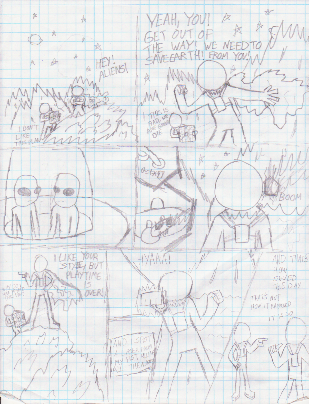 Very quick, very rough, very bad episode idea fresh from my brain and has not had the opportunity to be discussed with my friend.The Prince of Mars shows up on the moon, looking for a place to build a base so he can take over Earth. Dmitry and Isaac try to stop him by heading over to the construction site, but the guards toss them out before they can get to the Prince. They sneak in by knocking out two guards and using very shoddy Martian costumes to gain access. They make their way to the Prince's room where they bust in and attack. The Prince claims he doesn't want to take over Earth but he's being forced to by the King, so they don't kill him. Suddenly, alarms start going off because an asteroid is coming, and Dmitry, Isaac, and the Prince all escape the worksite. The asteroid hits and blows up the base. They go play video games in the Spaceco lounge.I've got far better episode ideas written down somewhere.