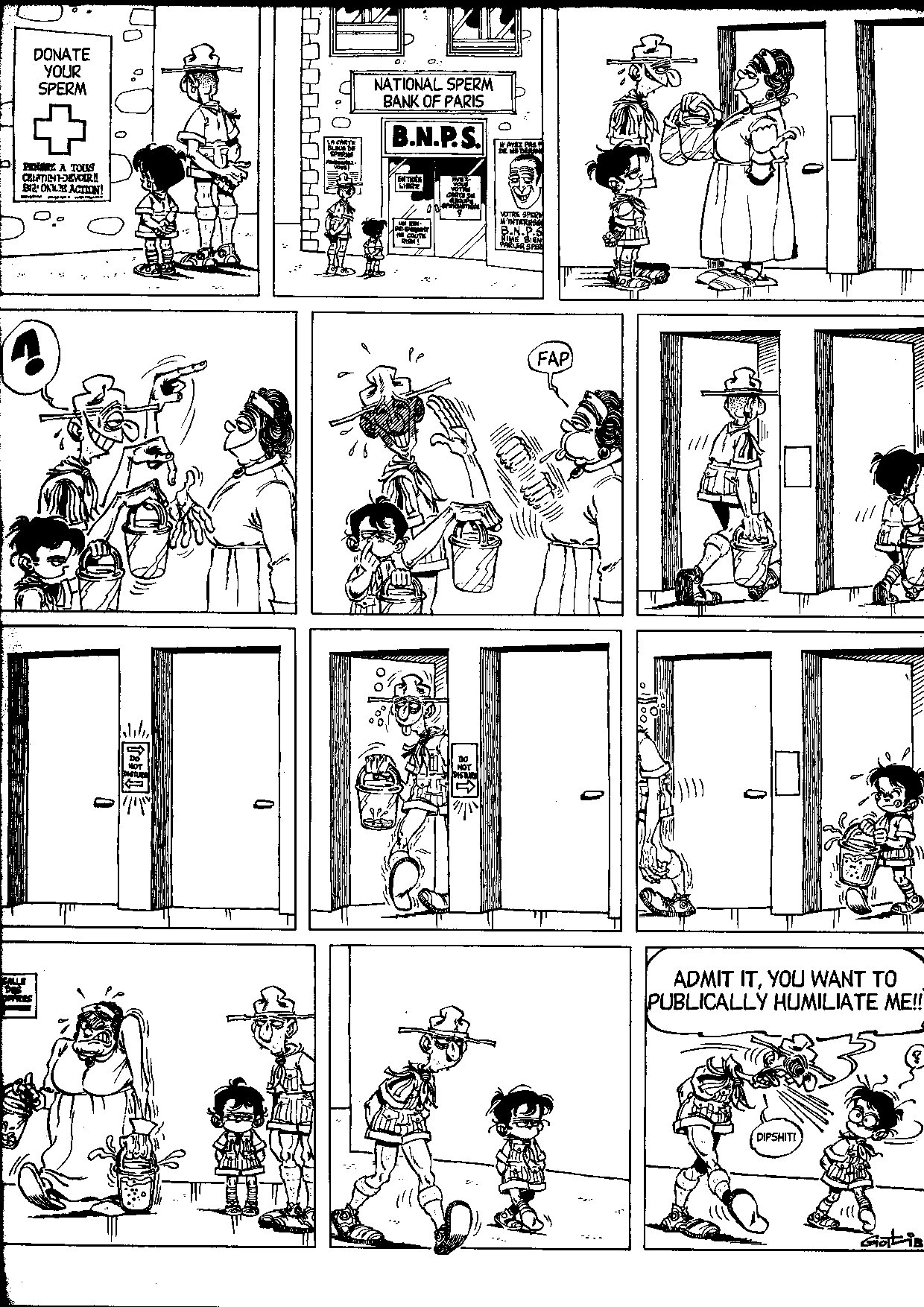 >>29171"Talking" works of Gotlib are near impossible to translate : witty and/or stupid puns everywhere, references to 60's and 70's politics... I grew up reading Gotlib, and there are some stuff I still can't decipher.