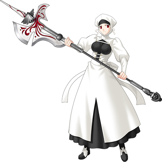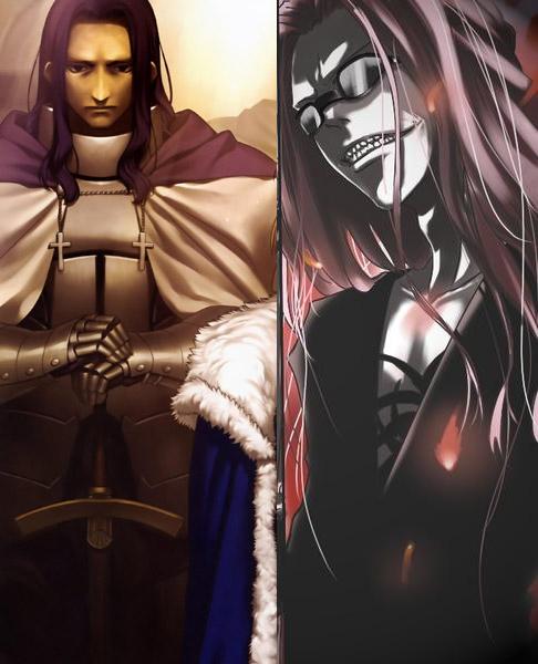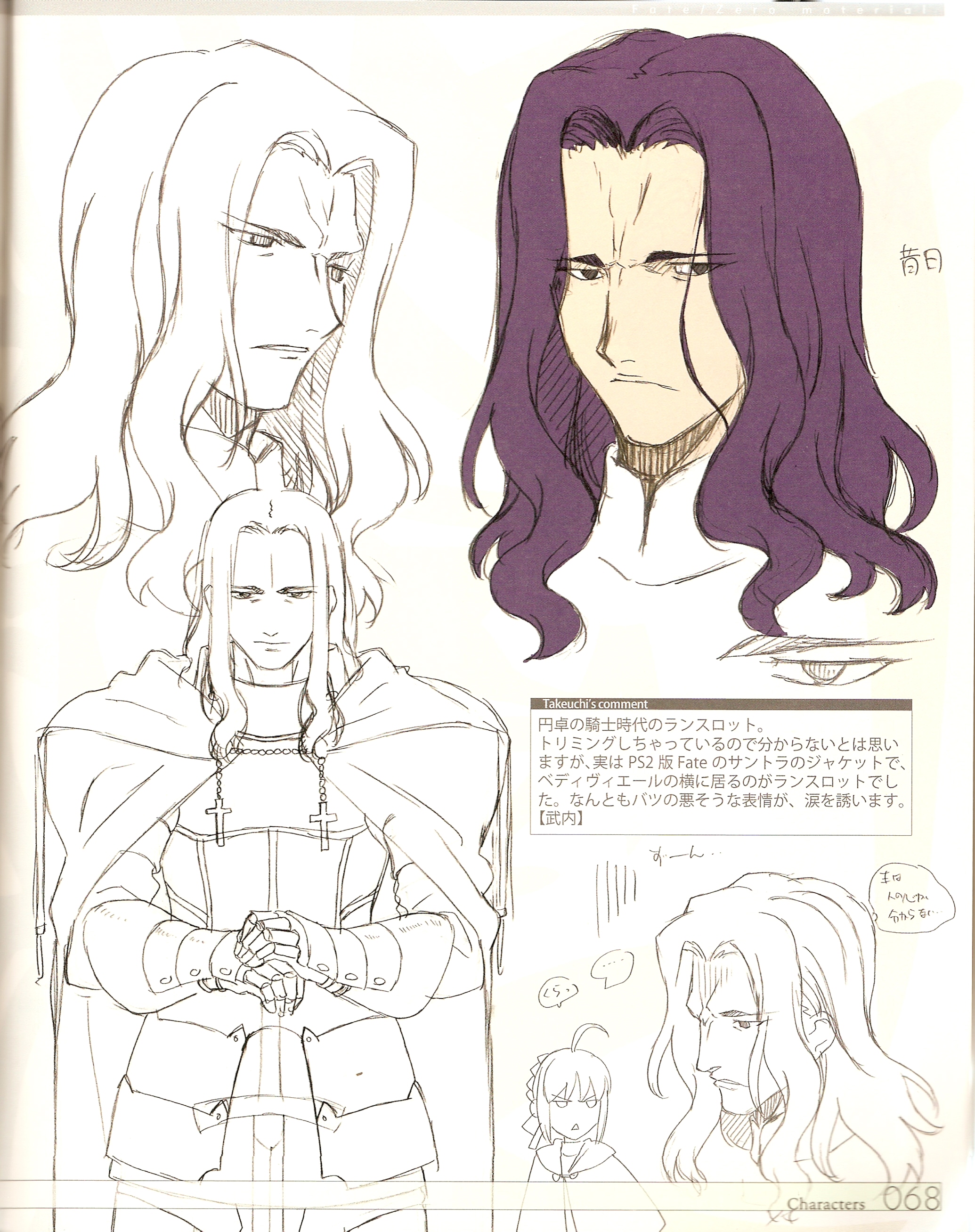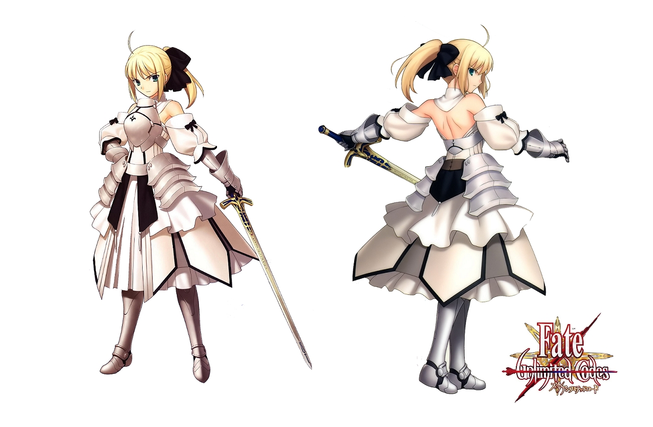 Lancelot's rather astute for an insane guy, recognizing Black Saber with her faceguard on.But then, we're also unastute, not recognizing her hairdo.Also, what's her second sword? There's no Dark Caliburn (Dark Excalibur exists because Morgana is also considered a Lady of the Lake), to note, but if you made one up then I don't really care.Or maybe Gil tossed her a new sword from his GEITO.