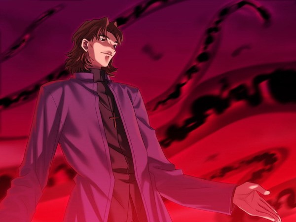 It's best to follow Zouken's advice and check out the church...You enter the church to be greeted by no one. This church actually has a creepy feel to it..."Hello there."You hear a voice approaching from a door around the corner....it's Caren. She's wrapped in bandages and walks while holding her stomach."Have you come today to pray?""He's here for me Caren."Kotomine walks up from behind her."What business does Berserker's master have here?"Why'd he say that in front of Caren?! You look at Caren as she quickly connects the dots in her head. She smiles."Do not feel guilt. The demon that possessed you to attack me is the one at fault.""Err, demon? Listen, it was a complete accident. Besides you ran in the wa-""Why are you here master of Berserker?"Kotomine cuts you off. He waves to Caren and she walks back after smiling."So Caren IS your daughter....That's a bit of an advantage in the war, don't you think?""No longer a problem seeing that she's out.""Don't bullshit me priest. I know there is more than one Assassin."Kotomine closes his eyes and smirks."Impressive deduction."You don't mention that it was Zouken who told you that."Caren is not the true master...I am. She was a decoy. I had a total of seven Assassins...with that one killed, I know have six, who are each monitoring every master."...He just revealed his entire scheme. Either he loves to talk or he's an idiot for assuming you already knew about it."So then...what must I do to keep you silent?"...Does he plan on killing me?..."I'll give you an Assassin. How's that?""What?""Well, I can't GIVE him to you, but I'll order him to follow your orders...He will be of use to investigate the other masters. Or you can use him to fight. Whatever you desire. So? What is your answer?"Alright, I'll acceptNo. I'm telling the Mage Association!