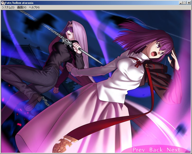 In case you don't realize it, this is the simultaneous fight that was happening in Luvia's route between Lancer and Assassins. You get this point of view for this route.Difference this time is that Collection-kun goes boom. Gee, I wonder who coulda done it?Will post part B later.