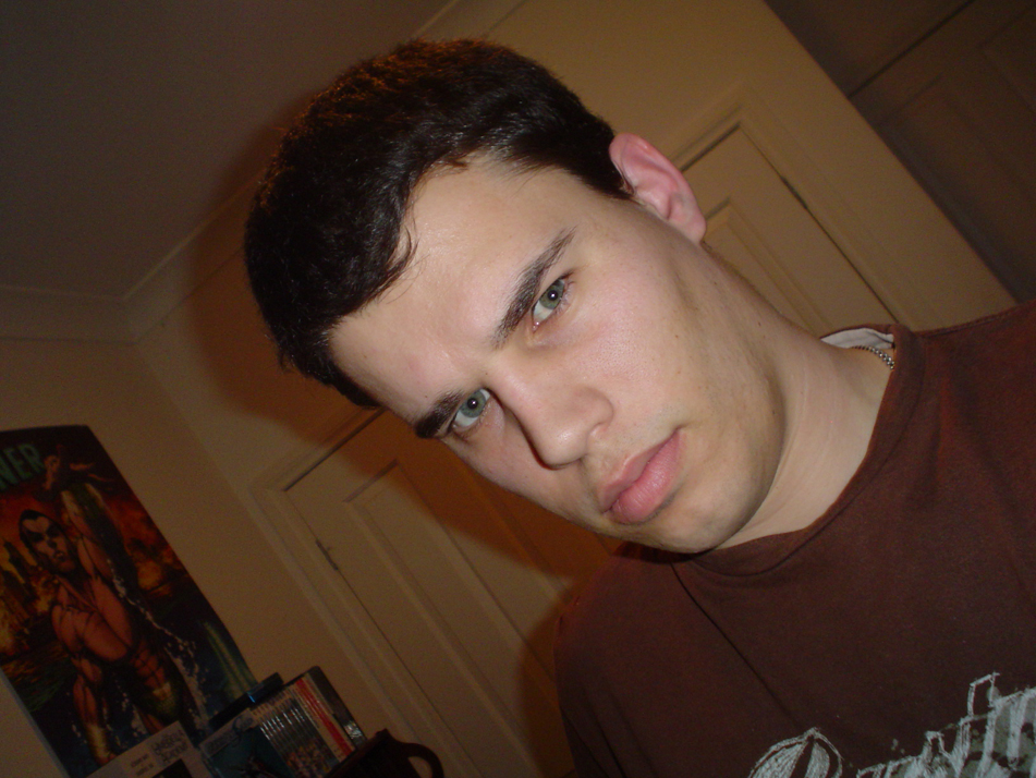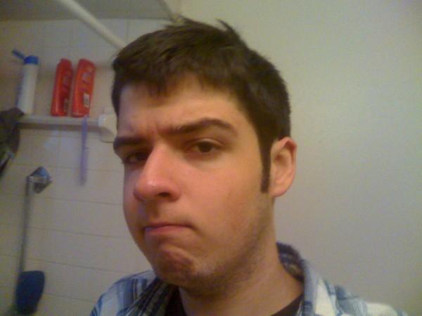 Whenever I try to look friendly, I just look insane. I think this is better than a brooding, faggy picture though. I mean, it's already in front of a mirror. Here in scandinavia, most nerds that aren't complete shut-ins look just like me. TrueFact™ .