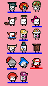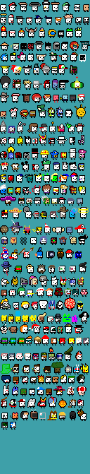 left to right, top to bottom- Goemon- Ebisumaru- Zack- Jack- Viewtiful Joe- Old Monk- Ramenman- Warsman- Fluted Helmet- Yurt- Maneater- Maiden in Black- Black Phantom- Blue Phantom- Kirby- Waddle Dee- Waddle Doo- DeDeDe- Kamina- Robotnik- Guy from Tron- Cobra Commander- Star Platinum- Jotaro- ZA WARUDO- Dio- Bomberman- Mechazawa- Croagunk- Deadpool- Hellboy- Big O- B^U- Ice Climbers- DK- Diddy- Castle Crashers- Gray Fox- Ditto- Hydra Soldier