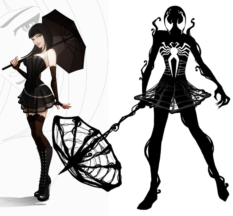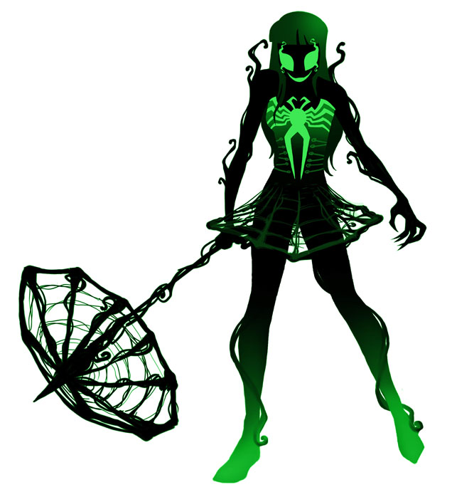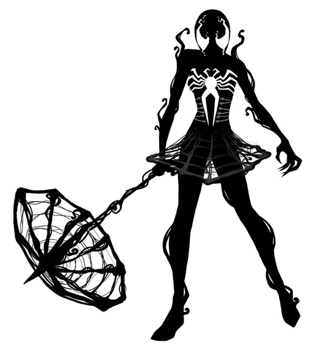 >>20994That design is her when she captures spiderman and "Slips into something more comfortable."Creepy stalker wedding dress anyone?>>21055More you magnificent bastard! Its incredibly good!>>21051parasol in human form is to keep sun off, she doesnt want to burn.Glass shards are an anger response - "What? You dont want me around? But....Webby ...." *shing*