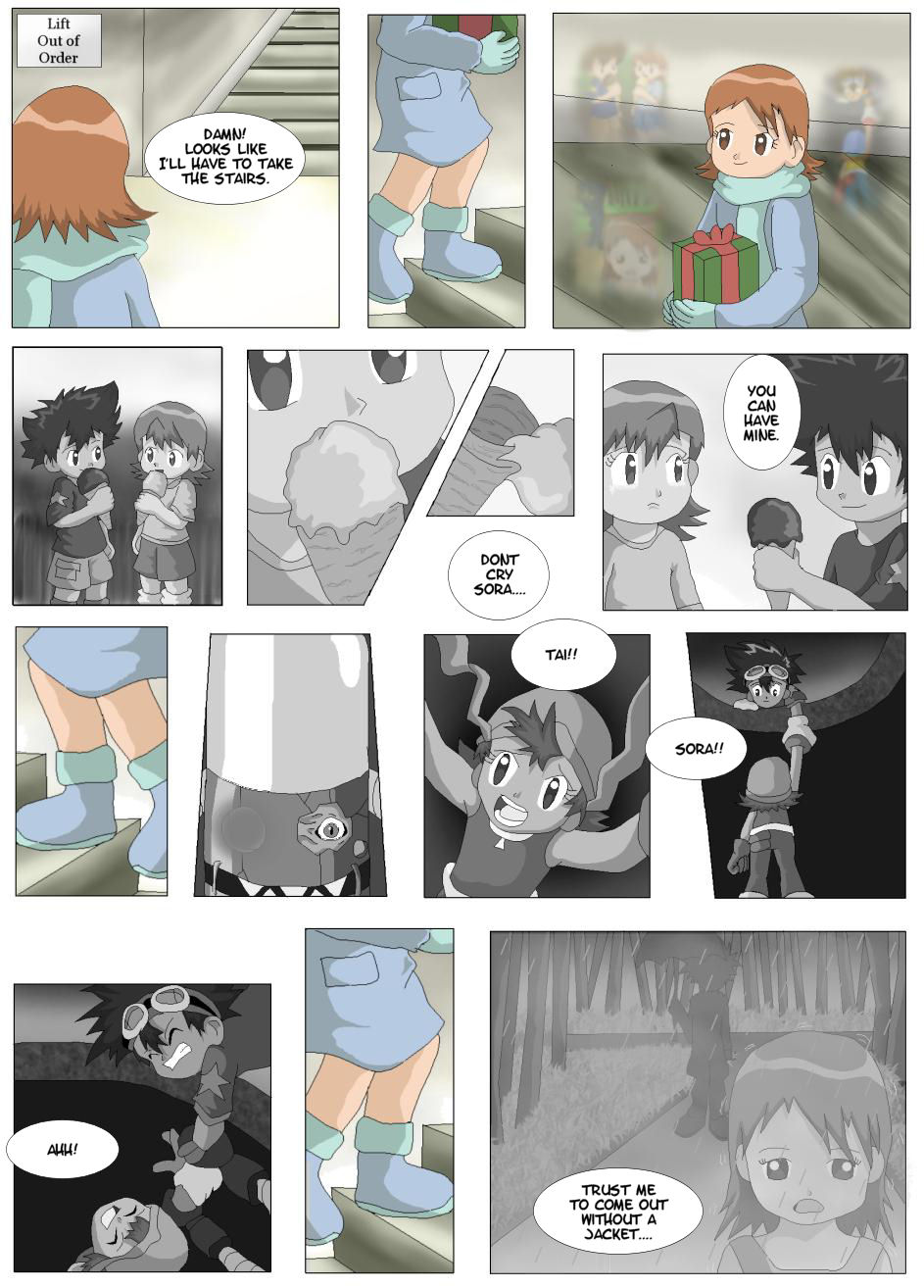 I'm loving this. Though I'd like this explained a bit > Meeting Daisuke on the soccer lit the fire inside him again, he saw a younger version of himself, but beyond that he saw Ryo in Daisuke and decided to be the boys mentor from now on. Daisuke half began living with Taichi and Hikari as Taichi took the mentor thing very seriously. Eventually he revealed his secret as a Chosen Child to Daisuke. So everyone remembers Vandemon and the battle in the sky?