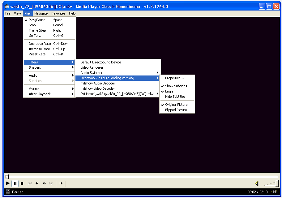 >>21951 >>21954 >>21959 >>21967 >>21971 VLC is essentially considered taboo by most int he video encoding/fansub community. it's so full of bugs and fail that people gave up on bothering with it years ago. The font issue stems from the fact that teh styled sub is built around VSfilter, players like SMplayer use their own internal filters that aren't full compatible with the most modern subtitling methods. Most people will not have the fonts I use, so for the softsubs they're 'packed into' the .mkv, and the player has to be smart enough to know to look for them there. I know I've said it a few times previously, but my releases are tested for full and complete compatibility with CCCP (http://www.cccp-project.net/). If you can't/won't use it and are experiencing troubles, I'd just suggest you wait for the hardsub, as that requires no specific software to play back except a decently modern video player (I hear even VLC can play it without blocking the crap out of the screen on occasion [pic related])