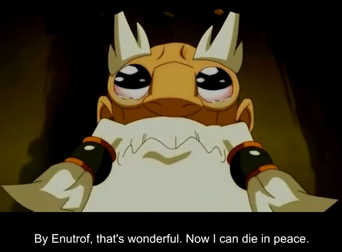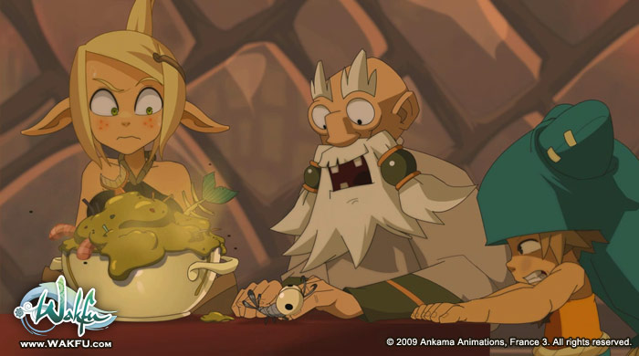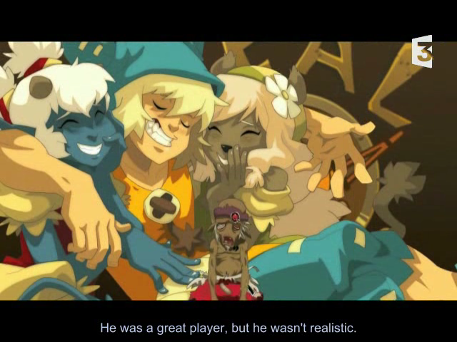 #214"I would be very surprised if people from France 3 were coming on these forums to read the 12 pages of comments. No harm intended, but I don't think that's their thing.When I'm defending them, that's not to be the token little creep, but really because they're worth it.They've been following us from the beginning, and I can assert without having worked with other channels, that we would never have had this kind of flexibility for creation with another channel.Episodes like "Grougal the eternal" or "Rubilax" wouldn't have made it anyxhere else.A series such as Wakfu, 100% french production on top of that, has never been seen on TV. And there was only this channel to do it, imho.Even if I don't always understand them, France 3 are my friends.Now, we're gonna try to think on our side about means to bring you something, as an apology. I have a few ideas in mind. I'll have a meeting next week with poeple involved and we'll talk about it.good week-end, and again, all my apologies for the dissapointment."#220(answering to someone who suggested the Goultard secial episode)"Good finding about Goultard le Barbare, that was my first idea"#227"Hey, calm down buddies.I have to talk about it first with the team. If we decide to bring you Goultard le Barbare, we will first have to rework on the episode. That's our very first animation and things have to be fixed. Starting with the Voice Acting."