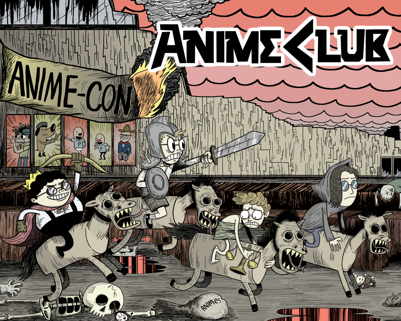 I'm going to use this image for the intro video.It's going to pan left starting from Dave and when it gets to Mort It'll pan out to show the whole image and under "Anime Club" the text "The comic dub" will fade in.Thinking about using this song for the intro (Not the whole thing of course)http://www.youtube.com/watch?v=eDd-GXkMrJsIf anyone has any song suggestions for the intro, I'd be glad to hear them.