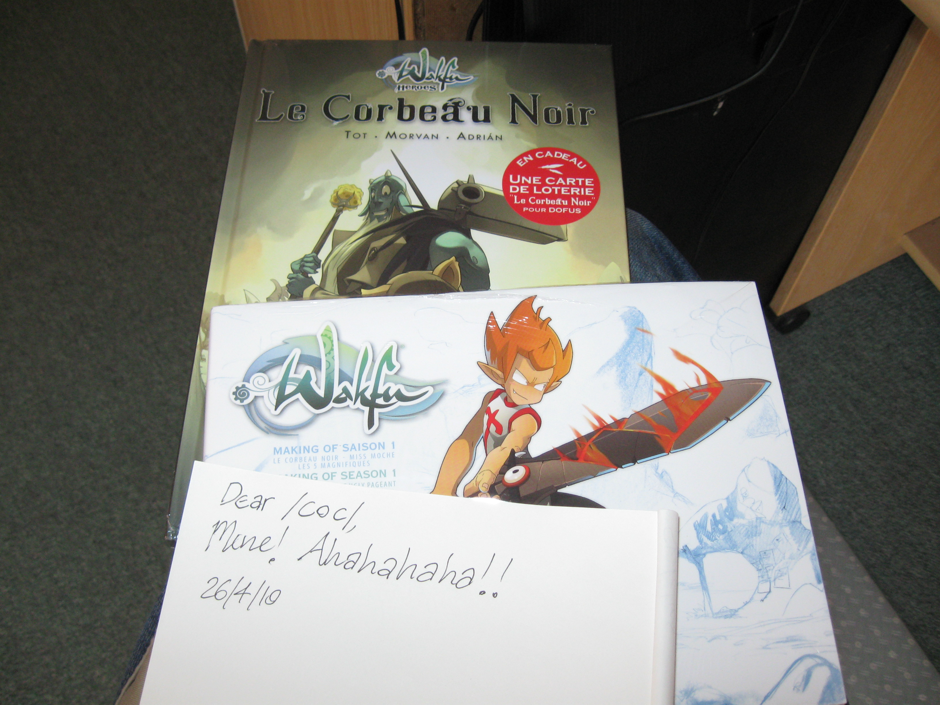 Franco-phones I have a mission for you, should you choose to accept it: Can you find out if the Wakfu heroes (ie: the imminent corbeau noir comic) will be published in English also? I want to order a couple of things from the ankama shop, but I'm waiting until I know whether I can get a translated version of that comic.