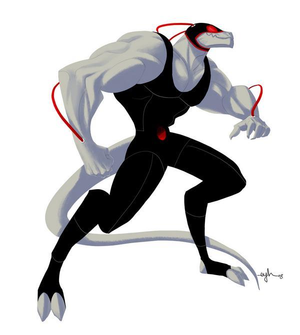 Next is the assassin-for-hire Killer Bane.Born in the swamps of Louisiana and left for dead by his alcoholic father and drug addict mother, Killer Bane was found and raised by a gypsy clan. The clan lived so deep within the Bayou that they went largely unnoticed by the rest of the world. In an odd twist, the gypsies believed that gators and crocs were avatars of their deity, and so worshiped the creatures. Killer Bane grew up believing that the crocodile and alligator were the perfect creatures, and began secretly training in a way that he hoped would make him as tough, strong, and fast as these creatures. What he didn't know was that he had mutated DNA, which granted him (GASP!) various powers similar to that of the gypsy clans sacred animals. When the clan found out, they began worshiping Killer Bane, considering him a divine gift and an earthly embodiment of their god. After a few years, Killer Bane grew tired of the idle life in the swamps, and sought a challenge befit of a god. Wandering the globe, he found himself in a bad position when a powerful Brazilian villain captured him and decided to test a new, experimental drug on him. The drug, known as venom, was incredibly toxic to most regular humans, and also incredibly addictive. Killer Bane, due to his unique mutant physiology, was immune to the more fatal effects of venom, but not immune to it's other side effects. The drug doubled his physical capabilities, but at the cost of rational thought and care for his own personal safety. Contained in an iron prison for his first dose, Killer Bane was unable to break free, despite his incredible strength. he was only calmed once the drug ran out of his system a few minutes later. Further tests proved that his body would begin manufacturing the drug itself on a small scale, but needed specific machinery to increase the rate of production and level of venom-blood content. The scientists that had created the drug built Killer Bane a portable device that would store and refine any venom his body produced over time, and could release it directly into his blood stream via implants in his wrists and neck. For some time, killer Bane was trapped in this prison, before the scientists made a mistake and he was able to escape. now addicted to this new drug and more powerful than ever, Killer Bane began challenging anyone and everyone he deemed a worthy adversary, defeating them one after another. Eventually, he found himself in Gotham City, where he was recruited by the Scarlequinn to help keep the city under her grasp. At first, Killer Bane denied the partnership, but after realizing the amount of carnage he'd be able to cause after siding with the girl, he accepted under the condition that he only had to take orders from Scarlequinn herself. Since then, Killer Bane has created a name for himself as the most bloodthirsty villain for miles, causing fear in full grown men with just his name.Powers & Abilities: Without Venom, Killer Bane has twice the strength, speed and durability of peak human potential, making him incredibly dangerous. Venom doubles each of those abilities. Sober, he is rather brilliant and an apt tactician, however even the smallest dose of Venom will reduce his rational thinking immensely, sending him into a more feral state. He has created his own dangerous fighting style used to combat the wildlife of the southern US swamps, and is capable of maneuvering alarmingly fast in enclosed environments. he can hold his breath for up to an hour, has senses sharper than most animals, and can swim twice as fast as he can run. His tail is strong enough to shatter concrete barriers in a few strokes, and can hold aloft several adult men. The claws on his hands and feet can rend sheet metal up to a quarter of an inch thick, and his teeth and jaw are strong enough to pierce sheet metal up to half an inch thick with ease. Venom merely enhances his physical abilities, but aside from a faint green glow to his veins and red eyes, there is no discernible difference. In part due to his abilities and also because of how he was raise,d he is an adept tracker and has been known to follow a single scent across entire states before finding his target. He dislikes using any weapon other than his own body in battle, and will only ever travel on foot, often suing Gotham's sewer systems to travel quickly around town. he has hand-picked and personally trained his own small squad of soldiers who swear their loyalty to Killer Bane and only Killer Bane.