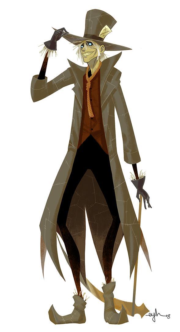 Then there's the MadHatCrow, who is my personal favourite (Scarecrow being my favourite villain of all time) of the bunch. When I first went through his power set and backstory, it ended up being very convoluted and just didn't feel right, so I'll be tweaking everything as I type this up.Jonathan Jervis Crane was always taller and thinner than most his age, and most above his age as well. By middle school, he was already pushing the 6 foot mark, but barely weighed in at 140 pounds. Despite this, he was stronger than he seemed, and possessed double-jointed hips and shoulders, allowing him an incredible range of movement. From a young age, Crane had a fascination with the human mind. Specifically, hypnotism and how fear plays a part in peoples lives. The idea of fear first struck Crane at the age of 6 when he wandered into a field of highly territorial ravens. The ravens attacked the young boy, attempting to drive him out of their field. Afterward, even at that young age, Crane became addicted to that feeling, and then sought to scare not only himself at every possible chance, but others as well. He became a prankster, trying to get the biggest scream out of those around him, developing a bit of a cruel streak in the process. As a result, the other kids around him grew to hate him, teasing and bullying him every chance they got. This only exacerbated Crane's cruelty towards others. It wasn't until high school that Crane learned of hypnotism. He was watching a late night program about fear and how easy it was to let go of ones fears through hypnotism. Watching the program, enraptured by the master hypnotist's words, Crane found a new calling. Training himself to hypnotize others in various ways, Crane began testing his skills by hypnotizing his classmates. He learned to manipulate people, and learned how to hypnotize them instantly, and often without even touching them. Crane even began carrying a pocket watch in a small act of theatricality. It wasn't until his senior year that he realized he could mix his two passions together, and hypnotize people into reliving their nightmares and suffering from their phobias. With his great intellect, Crane managed to receive a scholarship to attend the local Gotham university, where he excelled in psychology related subjects. His turn to villainy came when he was demonstrating the power of suggestion to a class of high schoolers and caused one student to greivously wound another. Crane, arrested and sentenced to jail for 20 years, retaliated against the court and the law. Swearing that he was merely trying to help the students understand, and that the judge and police were all fools, ran and hid from the law. Several weeks later he resurfaced, wearing a torn and tattered suit and top hat, resembling more than ever a scarecrow. With his considerable skill with hypnotism, Crane managed to convince the judge to release several criminals. Regressing into a state of madness, Crane took on the name 'MadHatCrow' and began spreading fear across Gotham partially believing he was helping others overcome their own fears as well as getting the rush he desired from creating and feeling fear. He does retain his original brilliance, and resorts to some cruel and twisted scientific "experiments" which has led him to create a nerve toxin akin to LSD which enhances his own hypnotic effects.Powers & Abilities: aside from being a master of psychology and hypnotism, Crane is an incredibly nimble person, able to dislocate several joints at-will and being quite strong despite his thin frame. By no means is he in peak physical condition, but he can hold his own against other fighters. Also an accomplished stick fighter, Crane always caries around a small walking cane to add to his fighting prowess and reach. He has developed a dangerous hallucinogenic that makes his own hypnotism techniques more terrifying as well as a small device which compresses the substance and expels it in a fine mist. A mad genius in every sense of the word, Crane is also highly addicted to the feeling fear, but over the years has proven to be less and less afraid of everything around him, leading to more and more desperate acts of cruelty in others.