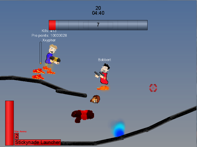 This thread is for MAH VIDJEO GAMEZ that I am working on for /co/.Basically. It is a fucked up Worms clone on crack.Here is the VIDEO containing blurry gameplay!http://www.youtube.com/watch?v=hEbHP_2zdqsHere is a download link for YOU BROS to test the game. Press F1 to learn GAMEPLAY TOUCHING OF THE BUTTONS during game.http://www.megaupload.com/?d=E3P4HGK1Don't forget. If you want a character or weapon put in the game, you will have to MAKE IT YOUR SELF.Keep it around the size and style of the image posted here.BROS.