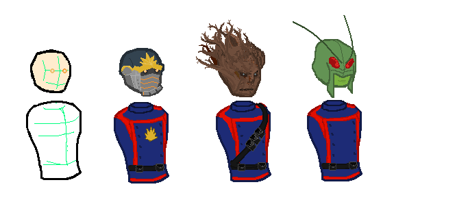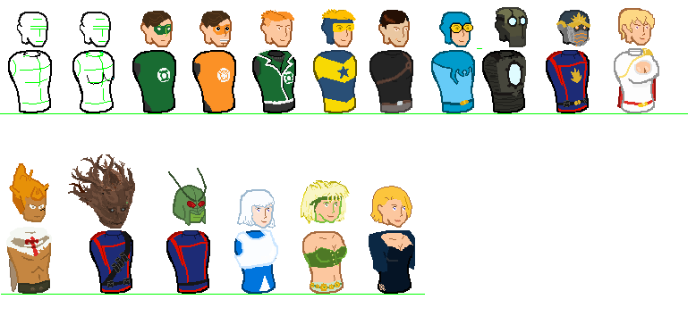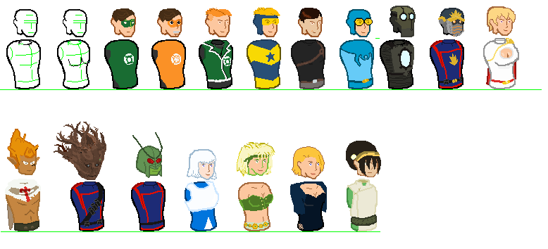 How easy is it for you to update the sprites? I realized I forgot Ted's antennae-markings on earlier versions and Rogue's head definitely need improving.Songbird is "done" but I'll work on her further.I spent about 1 hour on her pauldrons/shoulder area alone only to find when looking for a better reference pic of her hair there's a significantly simpler version of her costume./headdesk