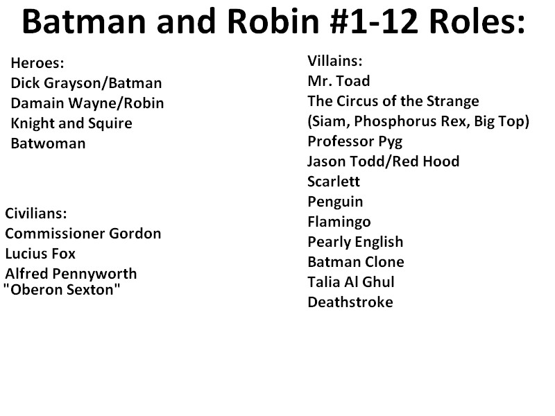 >>28797I'm glad you like it Penance. Maybe we should give the OP of the original thread another chance to see what we've been doing. We can start a new thread tomorrow around the same time as the first to try and find him/her. It'd also hopefully bring in some new voices.Speaking of, here's a list of main roles from issues 1-12. There's probably some I'm missing, so just add if I missed anything.