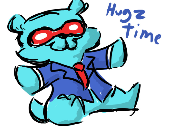 Though, I thought it was agreed that it would be smarter to find a bear that's already light blue and focus on the clothes the most?Also, anyone have the original /co/mrade bear pic. It said "hugz time" or something.