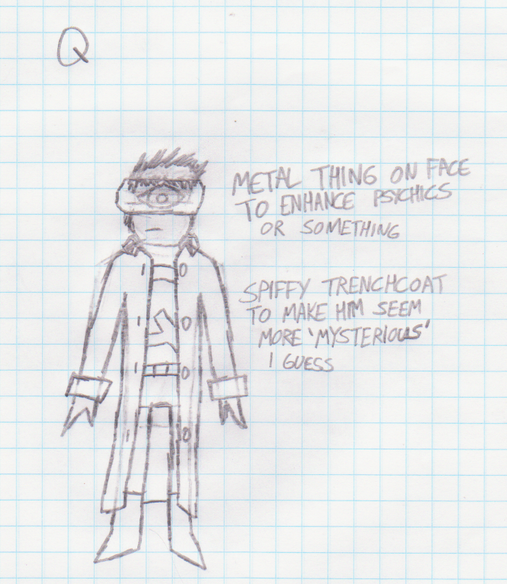 #2: QThis one, I'm not really sure what I was going for. Psychic detective? Ironically mysterious? I can't remember.