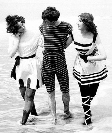 I can imagine Zatana in a fanservice-ier version of those old-fashioned bathing suits that women used to wear a century ago and were virtually dresses. It would suit her.