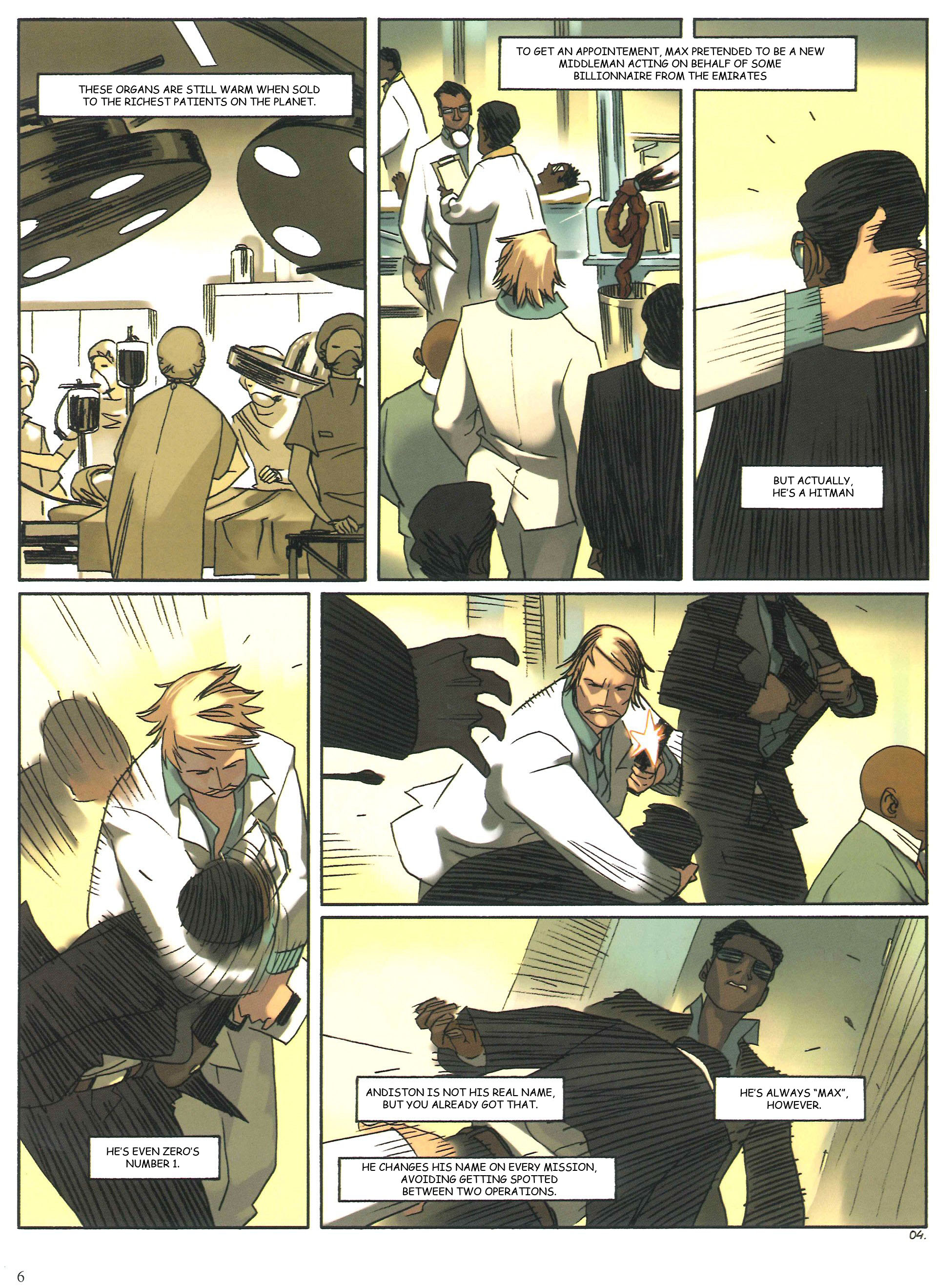 Original American translator here. You guys are crazy! Here's my version of the first 12 pages of Volume 2. I downloaded both Volumes, and will probably go back and forth between the two until I get them both finished, but it'll probably take me a lot more time than the way you guys have been burning through this. Great jobs!Page 1:Today, his name will be Maximillian Andiston.[Anglo-Saxonized]Page 2:He works for a consortium of medical clinics in the US.Right now he is in India......Inside the holy city of Varanasi. Better known to Westerners by its former name: Benares.Tens of thousands of Hindus come here each year to be cremated, putting an end to their cycles of reincarnation.Their ashes constantly hover everything in a noxious fog.Varanasi is the city of death.Page 3:This is a point Max should consider as he goes to his appointment with a very important man in an old colonialist building.He's meeting with Chanmugan Tapomay, a well connected businessman.One must admit that Tapomay does indeed make a lot of money, even if his business is a bit "unique."His agents kidnap the children of Untouchables.And his surgeons remove their organs.Depending on what is ordered, the kids may turn out to be lucky or unlucky.The lucky only lose an eye or kidney.The unlucky, a lung. Or their heart.Page 4:The organs are still warm when they are sold off to the richest patients on the planet.To get an appointment with Tapomay, Max has pretended to be the new middleman of a billionaire within the consortium.In actuality, he is a hitman.In fact, he is Zero's Number 1 Hitman.Andiston is not his real name, as you have already figured out.He changes his name as he moves from one operation to the next.But he's always Max.
