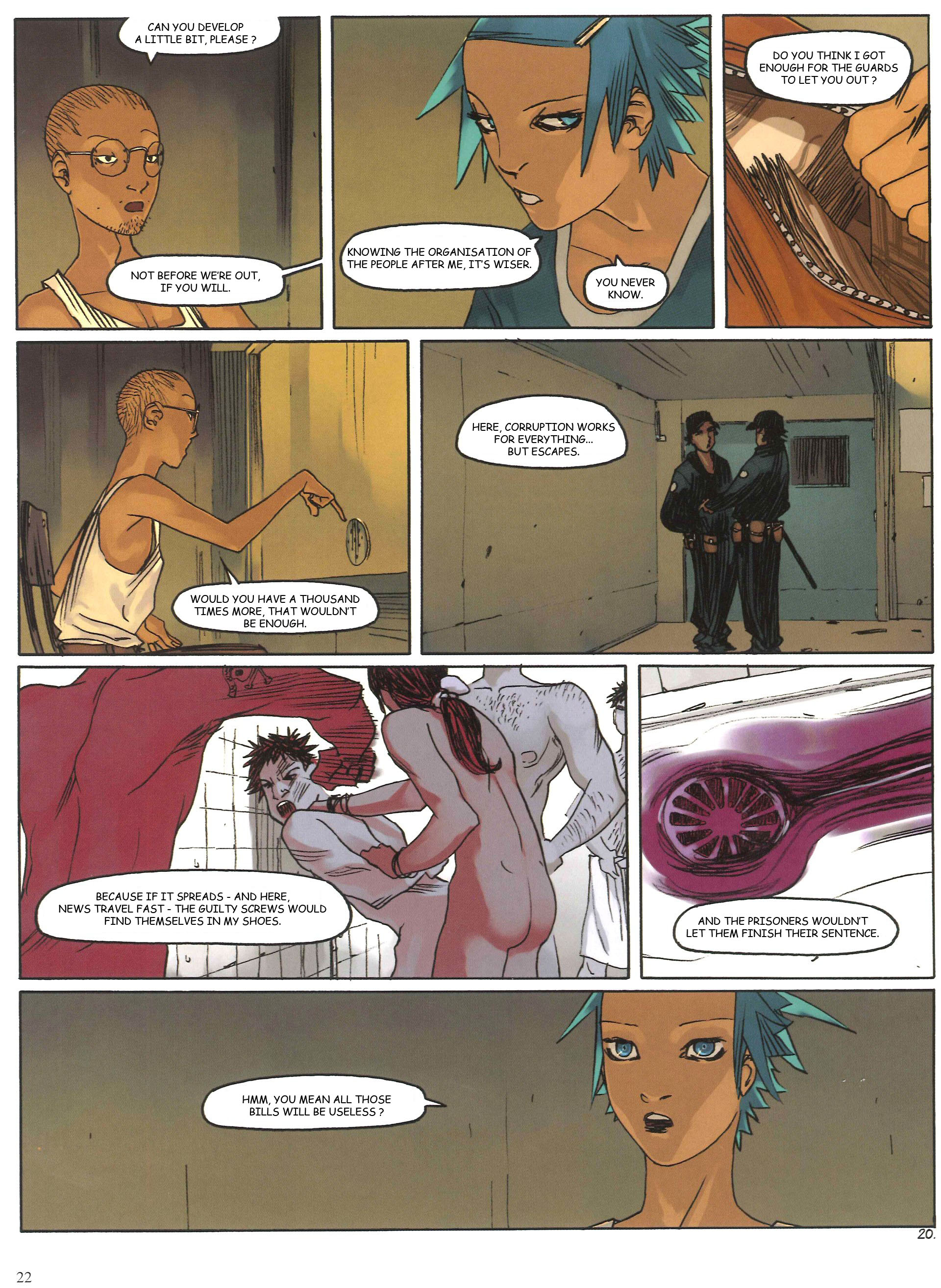 The Frenchies had some discussion on the translation of this page.Frenchy 2:i'm struggling with the following :"most of them will try to HAVE her, literally as well as figuratively"The french word "entuber" that i've replace with "HAVE" means to fuck (anal) as well as to con."entuber" even though clearly sex related, is not as strong as "fuck". but stronger than "have" IMHO.How could this be translated ?2nd topic :"un plan gun" is made on the pattern of "un plan cul" which is what you call a booty call.I've translated it by "a gun call" but I'm pretty sure that wouldn't be understood on your side of the atlantic ocean. Any ideas ?Frenchy 1:"A lot of them will try to screw her, literally as well as figuratively."