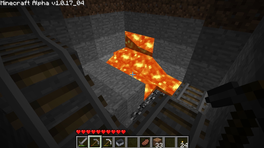 My minecart shaft hit lava.I'm going to have to think about how I want to handle this.