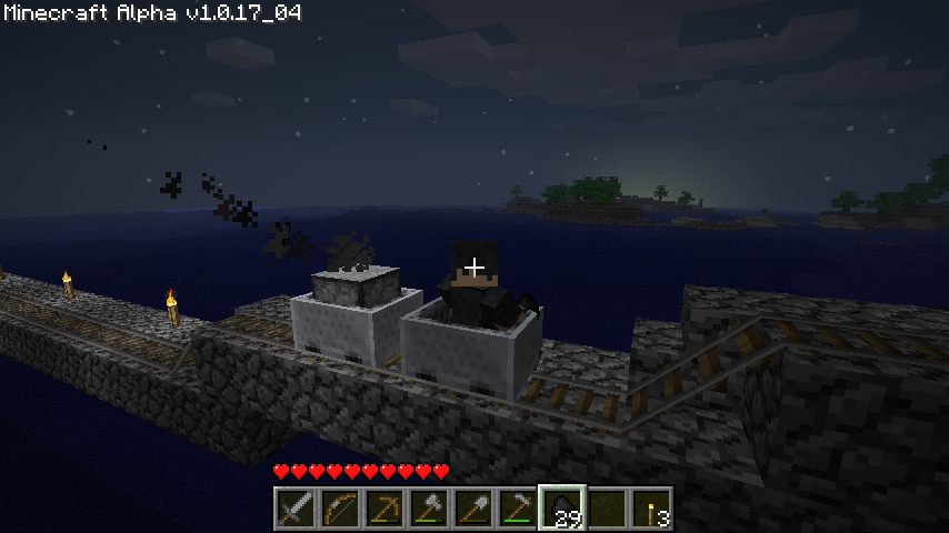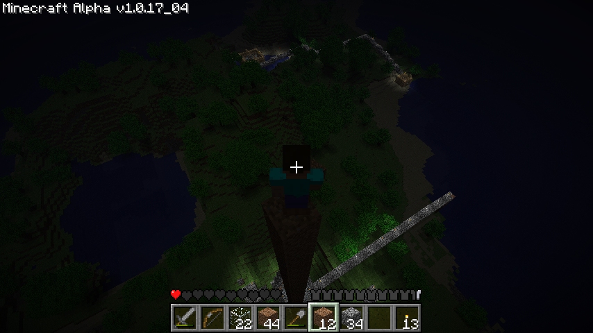 The rail bridge is compleeeete.Now I can start using the iron I mine for things that are probably more important like tools and armour.There is a few blips when it comes to how low the spawn hut is compared to the other buildings the bridge connects.Clearly I should rebuild the bridge and make the hut taller.Can you call a tall hut a hut?