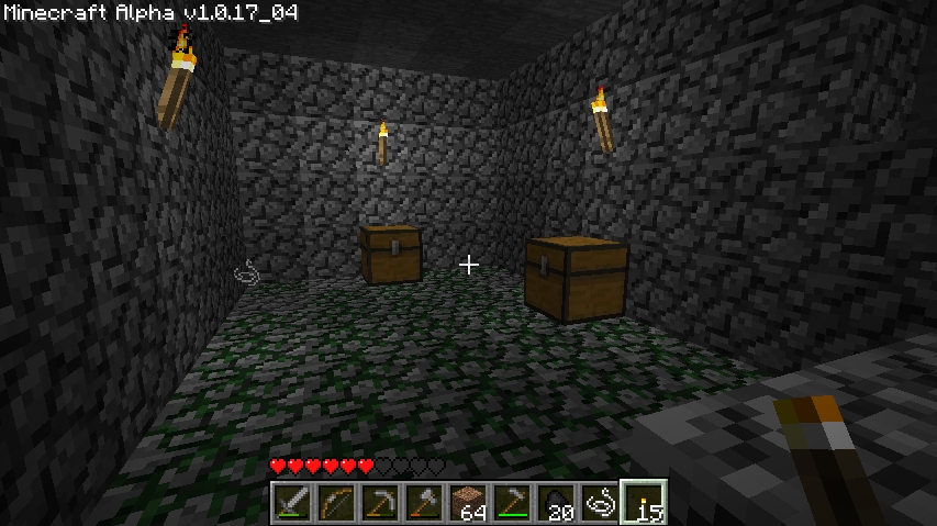 I found my first dungeon! I claimed a Saddle, some steel, a couple of buckets and a golden apple as my loot.