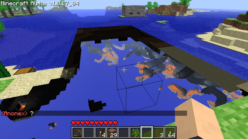 >>91088Yeah, sorry about that. Minecraft crashed. Apparently, you can make clay blocks! But putting them in your inventory will make SMP freak the fuck out. Four stacks of stone, gone.Logging back in right now, though. That freaky island won't esplore itself!