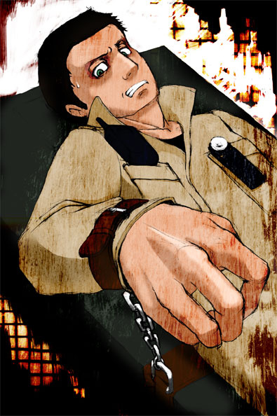 >>11501 Just thought I'd add to this thread some drabbles I posted on adultfanfiction and livejournal. ^_^;Title: Silent Hill DrabblesAuthor: Chaosdreamer (dreamerchaos)Beta: None.Warning: Slash, gore, and horror, AU. Mature.Pairing: Pyramid Head/James, Disclaimer: Silent Hill is owned and copyrighted by others beside myself. I'm only playing with the boys.Author's Note: Realized that I had posted the responses to some Silent Hill drabble requests on my livejournal account, but forgot to post them here. My aplogies. Primary pairing PH/James. Enjoy.raveechidnaIt's been awhile since we talked or you worked in the Silent Hill Fandom. Fandom: Silent HillCharacter or Pairing: Pyramid Head/Pyramid Head (the two of them) Possibly with James. Prompt: Punishment Rating: NC-17Their existence was sin.Their pleasure was sin. Their bodies pockmarked by scars, ripples and coils of muscles forever died gray by the touch of Death, but never to die. Punishment, perhaps, for their perversity? For the pleasure and gluttony of flesh and blood that they soaked themselves within on a daily basis?Or perhaps for the manner in which they deemed to touch each other. Taboo. Brother caressing Brother.Twins, apart only in the minutest flash of color across their helm. One a bright fervent red, fresh as blood. The other the color of old rust, of blood left to cake and spoil. However, their ivory, scarred skin seamed together. Hands mapping the other’s bare torso, tracing and relearning the canvas of scars and silvery lines. Muscles rippling beneath flesh with each obscene caress, one twin rattling a low moan, the other purring a sharp snarl.“BROTHER.” The eldest twin spoke.“BROTHER.” His twin echoed.They were passionate in everything. Their rage. Their glory. Their jealously, and possession of each other.It is to no surprise when their father dares to step foot into Silent Hill, and their massive lungs breath in his scent¯The youngest twin, rust helmet rising with interest. Snarling into the beating wind, gulping down the scent, rolling in across a serpentine tongue. “FATHER OF MY FLESH.” He sighed, greeting the wind and its alluring scent.The elder, blood-dyed helm also raised, clenches his hand around the hilt of his massive sword. “WHAT SAY WE CLIP OUR FATHER’S WINGS?” They share a look, mutual predatory smiles hidden, but their delight intermingling, “LET US PAINT OUR FATHER’S IVORY SKIN WITH OUR HANDS.”It is a fairly simple, yet clever trap they laid. One mocks James, stepping towards him, prompting the smaller man to run down the hall that he had traveled.The younger twin stands in wait around the corner. Snagging James’ wrist as he turns the corner, swinging the fragile human around, tripping him with one large boot, the momentum sending James slamming onto the floor. Radio skittering across the pools of shadows, spin like a clock upon torn and tattered carpet.James curled upon the floor, sky blue eyes dilated, chest heaving in terror. Trembling like a pale little rabbit, shielding his face with his forearms as both Pyramid Heads loom above him.“WE SPRANG FROM YOU, FATHER.” The elder snarls, “UNHOLY SEED FROM THE LOINS OF A MURDERER.”“N-no…” James whimpers, covering his face, “I don’t know why¯ I didn’t want to hurt her!¯¯I just wanted her to stop hurting…”“HUSH NOW.” The youngest is kind to sooth. Slick, latex gloves snagging James’ wrists. Refusing to allow him to cover his eyes in front of his children. “WE DO NOT CONDEMN YOU. INSTEAD…WE WELCOME YOU.”“Nonononononooooo…” James kicks and scratches, alternating between pleas and curses. “Please don’t do this Idon’twantthisPlease!!”“SILENT HILL GREETS YOU, FATHER. AND THE PUNISHMENT FOR DARING TO KNOCK UPON HER DOOR…” The elder sighs, serpentine tongue flickering out and chasing the trails of tears upon James’ cheeks.“THE PUNISHMENT IS OUR UNHOLY, UNWAVERING LOVE AND AFFECTIONS.” The younger whimpers in delight, hands slithering down to break the latch upon James’ belt, silver zipper beginning the slow slide downwards.jeza_redoh oh Me me!!^__^ I wanna... Seriously I'd love something from Silent Hill^^" FANDOM: Silent HillCHARACTER OR PAIRING: Red Pyramid (optionaly JamesXD) PROMPT: Red.RATING: err... dunno^^"The rivers and lakes of fresh spilt blood lapped across the floor of the apartment bathroom. Slivers of pulsing, crimson fluid still faintly pumping from the slashed wounds upon James’ wrists.A sharp, edged knife evidence of the gruesome wounds, the hilt and blade damp and coated in James’ blood. The fingers of one hand still resting on the weapon, but the limb possessing no more strength to lift the weapon and reapply it to the numerous, gaping slits in his wrists.The Red Pyramid only managed just to fit into the tiny bathroom, looming in the doorway, the devil incarnate in red, white, and brown. Red helm, ivory, scarred flesh, and dried blood painting his entrance into the tiny haven that James had crawled into.“POOR, SAD LITTLE MAN.” The Red Pyramid steps were slow and purposeful. Kneeling down over the prone man. The still warm blood slicking the front of his butcher apron, boots leaving red imprints and swirling tracks.Bleary, pain glazed blue eyes struggle to comprehend the Red Pyramid looming over him. The large hands upon his shoulders the only guarantee preventing him from sliding completely onto the tiled floor.“YOU REMEMBER THE TRUTH NOW.” The Red Pyramid was no detective, but he knew the flavor of defeat, horror, and grief, all rolled into one. The infusion soaked into James’ flesh, the catalyst for his desperate act of grievance. He chuckled in cold humor, “SUICIDES GO TO HELL, JAMES. NOT TO HEAVEN.”“…I…know…” James whispers, each word heavy in grief. “…d-deserve Hell…”“YOU STILL DON’T SEE, JAMES?...NO…YOU’VE NEVER OPENED YOUR EYES. NOT ONCE SINCE YOU STEPPED INTO MY HAVEN.” The Red Pyramid lifted gloved 