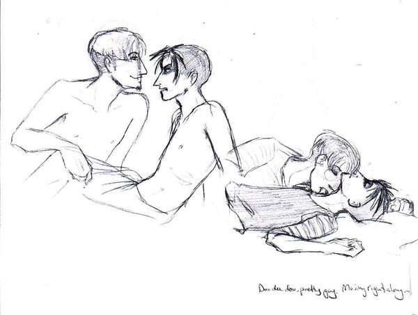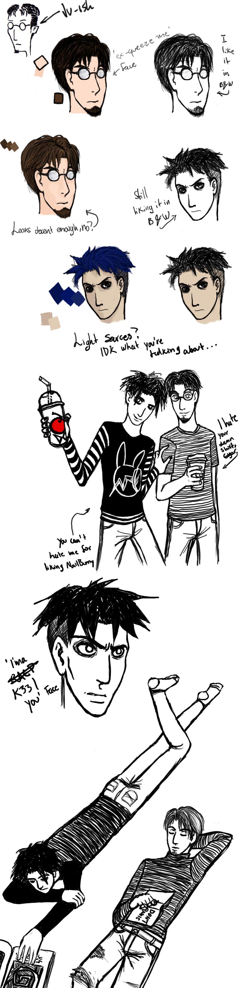 Um. Yay, thread hasn't died yet. Might as well post this and help keeping it alive.Have some doodles I did while gettting a hang on the boys. I'm still not sure I like how I draw them; makes me feel like I'm plagiarizing LYX's style, but that's how they insist on getting drawn... *guilt* Anyway. Shutting up nao.