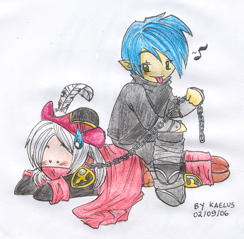 My boyfriend suggested I read this comic recently, and I remembered seeing this thread so when I was done with all 1224 I came straight here. I love everything you've done- these two are my OTP right now, which is pretty pathetic, but there you go. Why hasn't anyone played on the Thief's mind games with the Red Mage character? He does that whole crossdressing thing because of his 'daddy issues', which according to the Thief was just 'messing with him'. I can't remember which strip that's in exactly... But I think that's pretty good starting for some georgeously fucked up pornography. I would give one of my favourite organs up for more Fighter material- because I think he's a total darling. And now he's hot. Thread, you have given me the most embarassing crushes in the whole world.