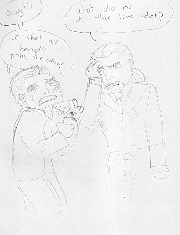 >>19793>>19794Not a day goes by that I don't wonder why nobody ever wrote any sort of fic revolving around their matching, nearly-heart-penetrating bullet wounds.