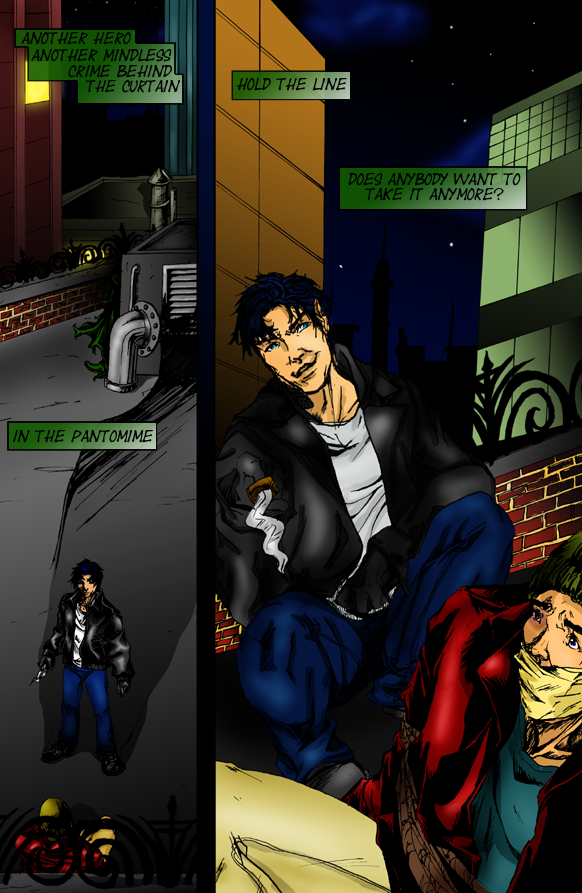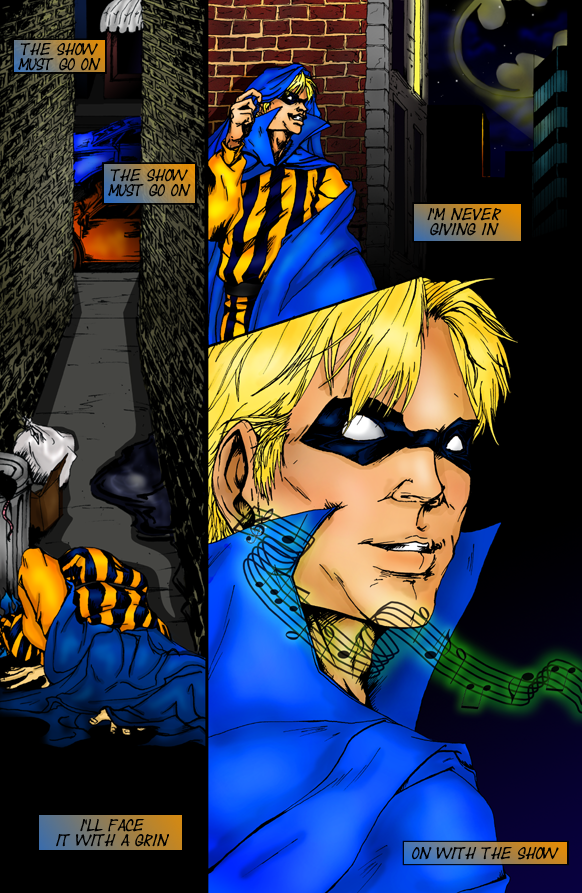 Summary: Piper's ex-boyfriend is also named James.The Penguin's wine cellar was cold, and Piper blew on his fingers to warm them. Beside him, Trickster was polishing off a bottle of 1952 Chateau Musar and saying, "I told ya Pengy had our backs. We'll be back on our feet and outta Gotham in no time."Piper didn't feel as confident about their benefactor or their odds of escaping Gotham with all their limbs intact, but he was too weary, cold, and heartsick to bother with arguing. All we ever do is argue, he thought, and all he said out loud was, "Whatever, Trickster. Wake me when we have to run for our lives again." He then curled up on his side, pulling his tattered green cape around him. Their clothes stank, but there was no way Trickster would agree to shower with him, and no way to remove their shirts without ripping them. Walking around shirtless and handcuffed to one another didn't seem much better than staying in their filthy costumes.Piper dropped off to sleep almost immediately, and soon his eyes were flickering back and forth beneath their lids. Trickster tossed and turned as much as possible, considering the chain, trying to find a comfortable position. He sighed deeply and prayed for sleep.Piper, meanwhile, was enjoying one of his favorite dreams. He dreamt about the afternoon when he and his ex-lover, James, had been caught in a rainstorm while walking back to their apartment. Laughing, they'd run up the steps, then slammed the door behind them and began stripping off their wet clothes. He dreamed about the damp shirt clinging to James' body, the smile on his lover's face, the way their lips met. So long, so very long since he'd kissed anyone. Dream-James kissed him breathless, and then pulled him towards the bed. "Hartley," said Dream-James. "Hartley. Hartley. Hartley. ""James," moaned Piper.Lying next to him, Trickster's eyes shot wide open. "Omigod," he mouthed silently to himself. Piper said my name in his sleep. Carefully, he raised his head and peered at Piper, making out the curve of his face in the dim light. Piper smiled, obviously enjoying whatever was happening in his dream. Trickster laid his head back down and concentrated on not moving a muscle.Piper was dreaming about -- what? Kissing him? More? Not that he wanted Piper to dream about them together or anything.This was an ego thing, Trickster told himself. It was heartening to know someone still found him attractive, even if that someone was Piper. He listened to Piper groan again, and idly wondered what Piper's fantasies were like -- was the sex rough? Or slow and passionate? Was it just primal animal lust, or did they kiss and caress one another? Were handcuffs involved? He decided Piper seemed like he was a little bit kinky. Piper moaned, and the chain between them pulled on Trickster's wrist. Yeah. Handcuffs are definitely involved. Dream-James traced the hollow of Piper's throat with his finger, and then followed with his tongue. "James," mumbled Piper. "James." Trickster smirked, thinking, Damn, I must be pretty good to get Piper worked up like that. Several hours later, Piper awoke with a start, yanking the chain between them and waking Trickster, as well. Stretching his arms and legs, Trickster smiled up at him and asked, "Good dreams, huh?"Piper's look was one of puzzlement. "Um, I guess. Why do you care, Trickster?"Trickster's smile got even wider. "You can call me 'James'."