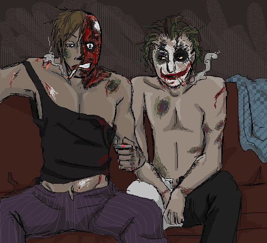>>3541Man, I freakin love this pairing. I wish more people drew it.I wish this artist didn't draw Joker so buff though. He -supposed- to be skinny.