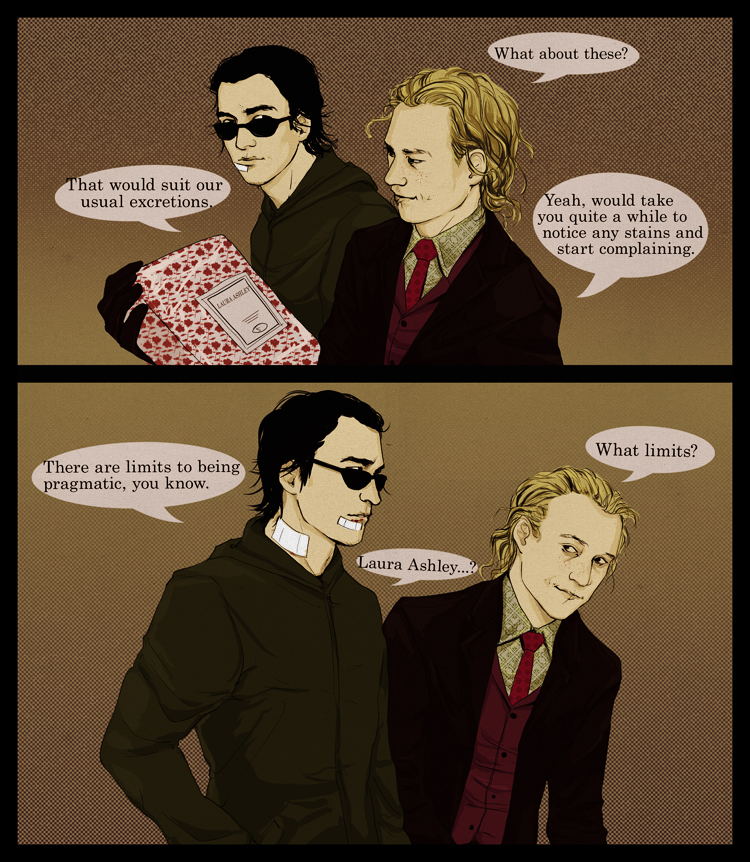 >>3541Man, I freakin love this pairing. I wish more people drew it.I wish this artist didn't draw Joker so buff though. He -supposed- to be skinny.