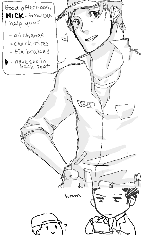 >>21872Ellis, cutest hick ever and the best character (SORRY NICK) in L4D2Although the two are totally gay for eachother.