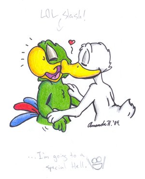 >>22158>>22161I'm divided between "OMFG! It actually exists!!", "OHMYGAWD, MY CHILDHOOD!!!" and "... Joe on the bottom is kinda hot... as far as anthropomorphic parrots go."On another note, my worst Childhood rape was the day I figured out what "Yaoi" and "NC-17" meant... with the Kirby: Right Back At Ya! thing. It seems relevant to the thread...