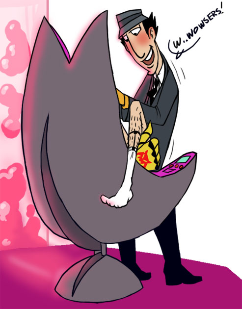 >>39273Do you think his cock does something mechanically special? I mean, do you think he can go "Go Go Gadget Vibrating Cock" while he's having sex with somebody? Or is it a super secret weapon? Go Go Gadget Skin Torpedo?I have officially ruined my childhood by contemplating these questions.