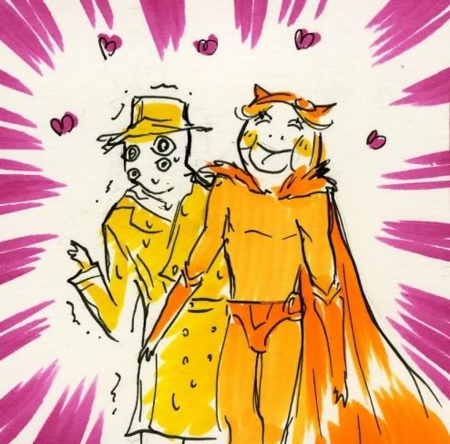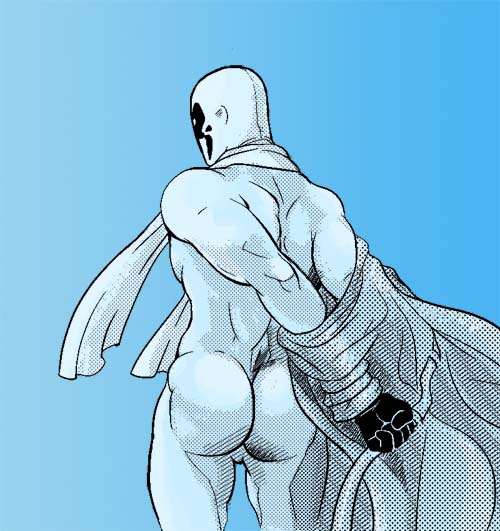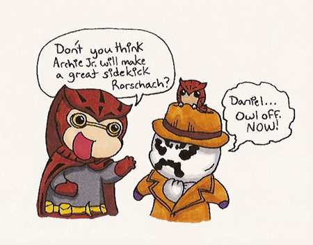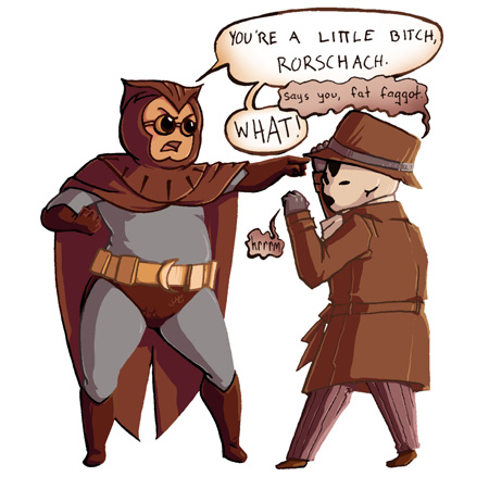 >>29900I love how you can't tell if Rorschach has been making out with Dan's face or his belly