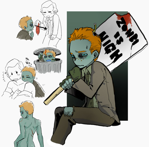 ...sheesh, 15?Well you guys have been busy.(so...kink!meme fanart? High school kids? Imp!stach? Zombie!stach? Crossovers? Meme needs more art.)