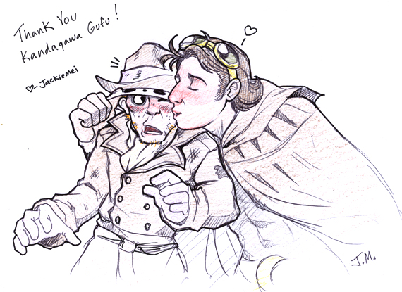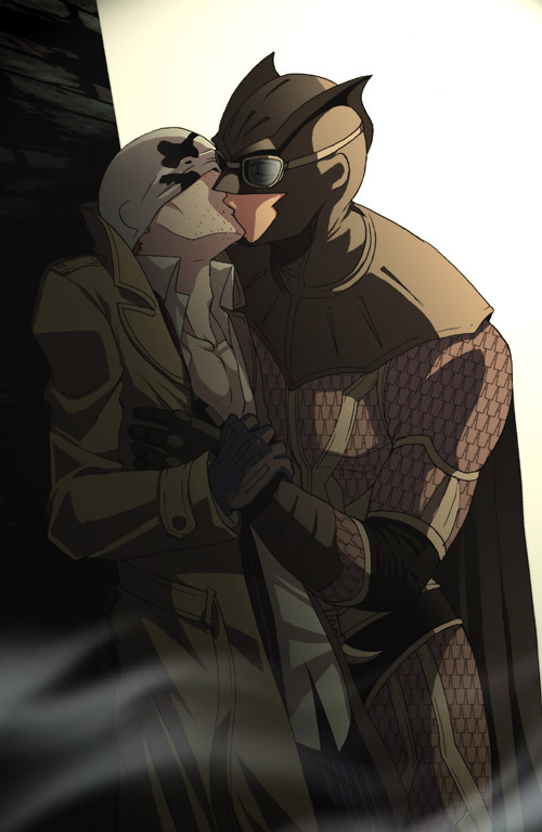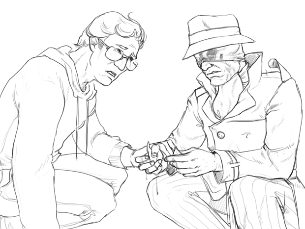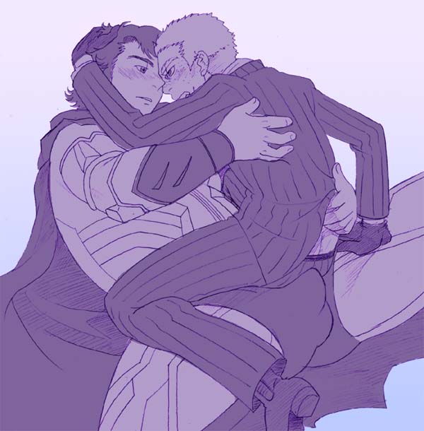 >>33530This is the fic that the picture is based off of. Never have been a more proud writer (even if this was sort of crack, written for kink meme)."Coasters NOT Optional"Nite Owl had challenged the tyrany of the Underboss, taken down criminals twice his size with twice the firepower. Hell, before Archimedes was ever in the picture, he was flinging himself across rooftops with a grappling gun and spring-soled boots (that had really been a bad idea, all things considered). He had never felt so close to death.It had been building up, really. It was only a matter of time. He had been pulling his hair out over the countless false alarms raised in the night from the clattering arising from his kitchen pantry. He woke up in the morning and there was no sugar for his goddamn coffee. Like a racoon- really, he couldn’t think of a better metaphor! Pawing through his inventory of canned goods, stealing away into the night without so much as a how-do-you-do. And just because he /had/ the money didn’t mean he /wanted/ to keep pulling it out of his pockets to keep repairing his door. He was beginning to entertain thoughts of having another housekey made, but then that would mean he was encouraging this sort of behavior.Then again, what did it say when he went out night after night without saying a thing to the perpetrator? Rorschach was there every night -unless he wasn’t, which Dan never got notice of- riding beside him in the hull of Archie or striding strong at his shoulder in the streets. Neither of them said anything about it, and Dan simply had to sigh and shake his head because he was just as an enabler. It wasn’t all bad, after all. Sometimes his partner lingered when caught in the act of poaching, sat at the table and humored Daniel’s attempts at casual conversation. Sometimes. Or they talked about the next big bust, the details of their next mission, which he knew the masked man was much more eager for. And that was pleasant.Lately, though, lately it had been trying Dan’s saint-worthy patience. Five nights in a row, they’d been chasing down a drug ring that seemed to be three steps ahead. Much to Nite Owl’s dismay, they had even taken the sewers in hopes of surprising what they had been led to believe was one of the higher up officers. Again, a little fish, a front man that knew as much about anything as the vigilantes. Another address to search, an abandoned warehouse to show for it. Even if he let Rorschach drag him through the streets until he was raw one breadcrumb after another, Nite Owl knew they were going to have to slip back under the radar again, wait for mistakes to be made. He knew it wasn’t what his partner wanted to hear, wasn’t something he would be convinced of through the same trivialities that made Dan want to throw his hands up.He awoke to the sound of his basement door hitting the wall downstairs, meaning his partner had taken the route into the lair. Probably had taken some tools too. Dan reluctantly rose from his bed- he knew Rorschach wasn’t getting any sleep over this. Infuriated, no doubt, that he kept being had. Couldn’t blame him, but something needed to be said.Daniel found him with a can of peaches in one hand and a can of Coca-Cola in the other, nestled in the crook of his downstairs couch. He had his mask drawn up to his nose, all square jaw and stubble and loud noises as he slurped the juice from the peach can.“Amastad another wash. Potential bases running out.” Was all he had to offer. He had a dog-eared map spread on the table before him, marks all over it where they had found information and crossed out every failure. Dan noticed they had increased substancially.“I’ll say,” Dan mused, “You’ve nearly covered the whole city.”“Necessary for success.”“Yes, desperation calls for drastic measures...”There is a tense silence. Rorschach chews on a peach slice with ruthless fervor. Schlorp schlorp.“Listen, Rorschach,” Dan sighs, feeling sorry for letting his exhaustion get the better of him. “They know we’re looking for them. Even the dumbest criminal can avoid an investigation if they know the roads we’re taking.”“So change course.” With the mask out of the way, Dan could see Rorschach was speaking through gritted teeth. He wasn’t going to let this go. He kind of had the pitbull thing going for him. But Dan wasn’t amused. He was tired and he was beginning to feel desperate for his friend.“We need to lay low for a while. Make them think that we quit.”“Hrn. But /they/ won’t quit.” He set the can of peaches down on the coffee table and cracked open his can of coke, taking long swallows and wrinkling his short nose reflexively as it burned all the way down. “Can’t let them win.”Daniel knew it. Somehow, Rorschach had gotten it into his head that he had something to prove to himself by persuing this case. Neither of them could possibly know it now, but things were going to get a lot worse in the future, the stakes would be much higher. Right now Daniel thought his partner was wound so tight he was bound to pass out from brain deterioration (from the man’s clear insomnia) all from clutching at coat tails. Rorschach was taking this way too seriously for his own good, but he was too damn ate up with it to see reason. And Dan wasn’t really good at being anything but reasonable when baring down his friends and colleagues. He was still grasping for something to say when Rorschach said it.“Don’t need to come. You rest, Daniel.”Maybe the masked man hadn’t meant it to be patronizing, didn’t mean for it to sound like he was implying Nite Owl step aside. But Daniel reared his head back like he had been slapped all the same, the words making him blink behind his glasses in rapidfire offense. It stings. He is a young man then, they both are, and he has his pride too.“You stubborn bastard, you’re going to be so dazed that /if/ you find them, they’re not even going to have to try an