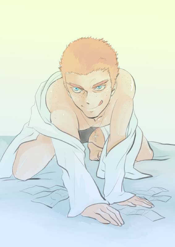 >>38020>>40213'Think this is it. Saved the writer's note and everything--such a great story...:I finally got round to finishing the aggressive!Dan/hobo!Walter that I briefly mentioned sometime before. I tried to fit as many wee kinks as I could, but it's my first fic and I'm still not very sure about it. They're both pretty disjointed and OOC, but lets just say Walter was gagging for a bit of hot identity pornings, and Dan is just goddamned sexually frustrated. ------------------------------ Above the city, storm clouds were gathering; a slowly churning mass, the same ill purple-yellow of old bruises. Weak buttery light barely reached the streets below as the clocks crawled past 5pm, and the early evening air was saturated with moisture and the promise of thunder. Daniel eyed the sky with a degree of distrust as he expected the heavens to burst at any moment and drench the ruefully umbrellaless fools of New York. "- and it had been so nice this morning, which just goes to show you can't even trust the damn weather anymore these days -" In response he merely gave a mollifying smile and pressed a few coins into the waiting palm of the ever-chattering newspaper vendor. Normally, he might stay for a moment and make small talk, but he wasn't in the mood for it then. Tucking his rustling purchase under his arm he stepped out into the busy street again. Old fool. Since when could you ever trust the weather? He smirked, and shook his head. Tomorrow he would be insisting that Heather the Weather Girl was in league with the Reds or some bullshit. Daniel had the bad habit of watching his feet instead of where he was going, which wasn't a good idea at any time of the day in NYC but was down right thoughtless during rush hour. He brushed past countless shoulders, his gaze lowered to a foot infront of his worn brown loafers as suits grew impatient behind him. Comfortable brown shoes to go with his comfortable brown jacket because he was just comfortable brown Daniel Dreiberg. He would rather watch legs than faces, rather run the risk of a casual bump than accidental eye-contact. The first few pregnant drops of warm rain fell like wet little bombs and the homeward bound crowds seemed to speed up all at once which only succeeded in slowing them down as a whole. He couldn't have been more than a few blocks away from his apartment, so he didn't care much though he did wish people had more patience. It was just then as felt an urgent shove from behind as someone with a briefcase squeezed his way through the trudging masses like a snake, and Dan struggled to keep his balance. He over compensated with a step or two to the left and ended up walking straight into a stationary man. He reeled back with mumbling apologies as he lifted his gazed to see his victim - and froze. The man was not a stranger. Daniel had seen him a hundred times before, stoically prowling the streets from the diner to his apartment. His eyes worked from the shock of dirty red curls to the stoney colourless gaze down the dirty brown suit, and his mouth went dry. He was a couple of inches shy of perfect, but the strong jaw, the wiry frame hidden beneath filthy layers, the downturned mouth and thin lips made up for that. Christ, he could even smell him from there. Dan had never spoken to him, never even come with fifteen feet of him but he had watched him before - every day he would stand like a sentry in his chosen spot, his sign proclaiming the approaching apocalypse slung over his shoulder like a gun. Eyecatching yet instantly forgettable. Repulsive yet attractive, an enigma in dirty rags. Dan wet his lips with a nervous tongue as they stared at each other for what seemed to be a century. "It's raining," he said dumbly after a moment. The man adjusted his possessive grip on the sign but said nothing, his face as forcefully passive as ever, "Your placard will be ruined." Still no response. Daniel could feel himself shriveling up under that cold blank stare. He squirmed slightly, kidding himself he didn't know where he was really going with this. Kidding himself that he hadn't played over this situation a hundred times in his head with a hundred different people. "Do you...have somewhere to go?...To - y'know, stay?" The filthy man stayed barely long enough to hear Dan's innocent question. He side stepped him and continued on his glum purposeful march to nowhere in particular. The bespectacled Samaritan was left floundering for someway to stop him. This was just too good an opportunity to pass up. "I-I'd pay you," he spluttered, pretending not to notice the funny looks he got from passers-by. The tramp stopped midstep as though he had been stricken, and turned with a snarl that sent shivers through Dan. Yellowing teeth bared, eyes flashing, body tense for just a moment - it was perfect, absolutely perfect, "A hundred dollars, in cash." The sudden flare of anger was gone, and gingery brows creased in a cross between disgust and distrust. Dan knew what he was thinking - scum. He was scum, and by god he was so right but if he didn't do something about it - about Rorschach, about this crazy wonderful man - he would surely explode. He was just human after all, he had needs just like anyone else and they surely weren't worse than most of New York's. Struggling to maintain eye contact, Dan swallowed hard. /Hit me,/ he urged silently as the seconds carried more weight than all the raindrops in the world as they fell away. /Do something. Yell, walk away, sock me right in the jaw, but just do something don't just look at me like that/. His nerves wouldn't - couldn't - hold out any longer, and he turned to go with a muttered apology. Evidently the redhead wasn't quite as desperate as he looked. "Forget it," he said though he was too far and too quiet to be heard. Shame and frustration rolled in his belly like two hot stones and he sighed, "Thought you were someone else. My mistake."Daniel decided to take the long way home, crossing the street as quick