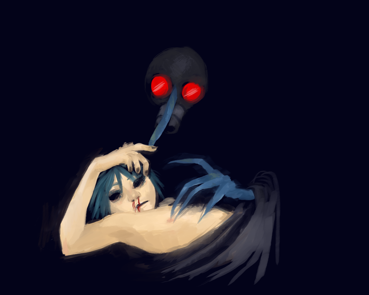 At first, he tried not to let it affect him; so what if 2-D was ignoring his phone calls after Demon Days, making himself scarce from Murdoc. Murdoc didn’t need him. Murdoc needed only Murdoc! A few months had flown by, even a year, until the Stoke-On-Trent native snapped.He needed money. He needed a new album. He needed 2-D.…But 2-D didn’t need him.How dare his vocalist start a new life without him, somewhere gallivanting about in fucking Beirut, having the damn time of his life, while Murdoc himself was running in fear of pirates…or so the Satanist thought. When he approached the apartment of his beloved faceache with a tank of Valium gas in his arms, 2-D looked unhappy…miserable even (although naturally confused)…as he stared out the window.Stuart Pot arrived to Plastic Beach, angry as the blaring sun shining down on their new HQ, and ignored Murdoc for days in his dingy, whale enforced room. Once again, it ate away at the older man…how he could ignore him. JUST HOW?! 2-D was supposed to be pining over him, not the other way around.Murdoc put a quick stop to that. After a few drink and spliffs were shared between the two men, the long time ‘mates’ were fucking against 2-D’s floor, the bed and whale forgotten as 2-D cried in long forgotten ecstasy, Murdoc’s name filling the tiny room as his captor pounded into him.And now they’re here fucking…just them. Just Murdoc, 2-D, and RoboNoodle on the lonely shores of Plastic Beach. Murdoc finally has the dullard all to himself, and he is just as determined to hold on as he is to not show his weakness.“I know you can do better!” Murdoc snarled into 2-D’s ear, drowning out the singer’s own moan when he raked his long nails down his boney spine. “Fuck me like the way you hate me, dullard!”That’s when 2-D paused again; Murdoc was growing sick of it. He opened his eyes to berate him some more until he was caught off guard, 2-D glaring daggers at the other. Stuart Pot licked his lips and pulled completely out of Murdoc Niccals, now the one to grab Murdoc by the hair and tug his head back. He slammed into him and Murdoc gasped, Stu hitting his prostate dead on like a bull’s-eye, repeating the action over and over again. Crooked teeth bit crushingly into Murdoc’s shoulder, pulling away to see teeth marks with a space where his incisors once were.With every stab inside of Murdoc, the older man shivered, now the one crying out Stuart’s name as 2-D gave him the pleasure he wanted. Stu’s free hand grabbed Murdoc length and rubbed quickly, causing delicious friction that only made the attack to his G-spot more intense, Murdoc beginning to squirm. His breath caught in his throat as he felt the pleasure of release wash over him, letting out one more gasp as he finished in his lover’s hand. “Stuart!” The sound of his name was enough for 2-D to finish right after Murdoc with a few more erratic thrust, whining in pleasure against Murdoc’s neck as he finished inside the older man.The feel of 2-D’s spunk filling him never got old, still sending a trickle down Murdoc’s thin spine. 2-D lingered inside him only for a moment before he pulled out, landing right besides Murdoc as the two men stared gasping for air at the ceiling, both of their heartbeats drumming around in their ribcage.