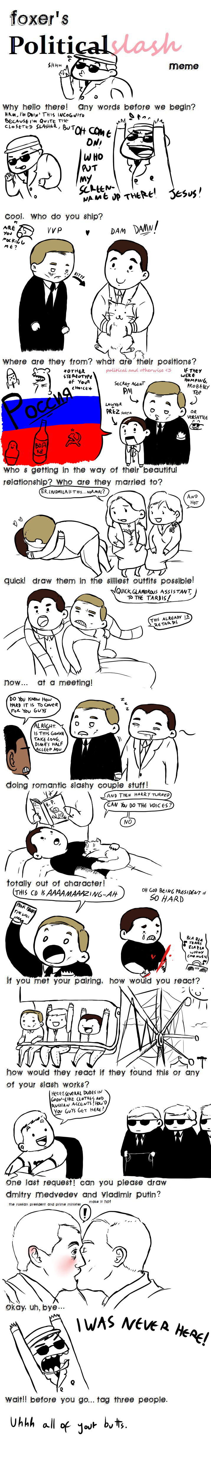 I know there is a meme but I think politicians deserve their own thread.I'll provide content: An amusing bit from /y/, feel free to reserve roles.>The negotiations began with pointed words, flourished statements and tactical use of the pen. They ended with Nick face down on the floor, and David's stout, stubby penis rhythmically and mechanically pumping his tight, virginal arse hole full of joy. Nick's penis throbbed with each visceral thrust, and seemed to grow harder each time, penetrating the air further as it hardened. It was long, slender and smooth, and his testicles glistened with sweat, like a a perfect sea shaped stone, sparkling on the shore as it bathed in the sun's light.