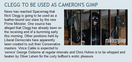 >>40962>"Brown/Clegg, Cameron/Clegg - which one gave Nicky the best bj?" Loved this one. >Experienced (wanted to ask him about that, but was afraid he'd punch me)>:)Just brilliant.The dubcon one is also great if you still love Clegg and hate Cameron.
