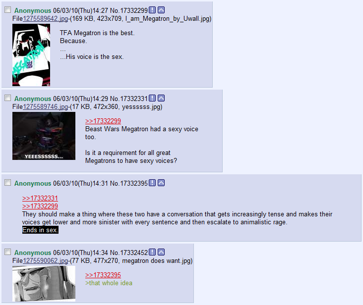 I'm not even that into Transformers but these pictures turn me on immensely for some reason. Anyone care to recommend any Transformer related comics/cartoons while we're at it?
