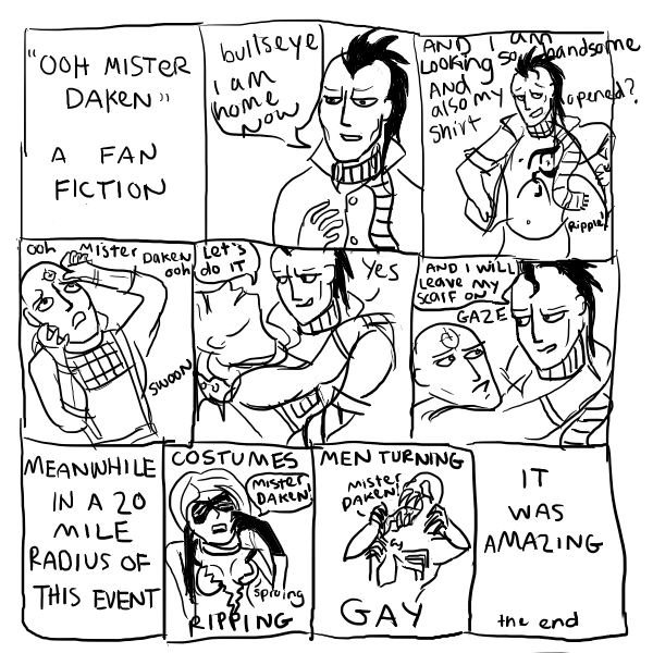 >>44183I love how the artist draws Daken. That creepy toothy grin cracks me up.>>44187I really want to give him a hug :3And not my fic, but must link. Family fluff, but Daken gives some guy a blowjob so it's /coq/ related enough for me - http://marvelkink-v2.livejournal.com/597.html?thread=150869#t150869