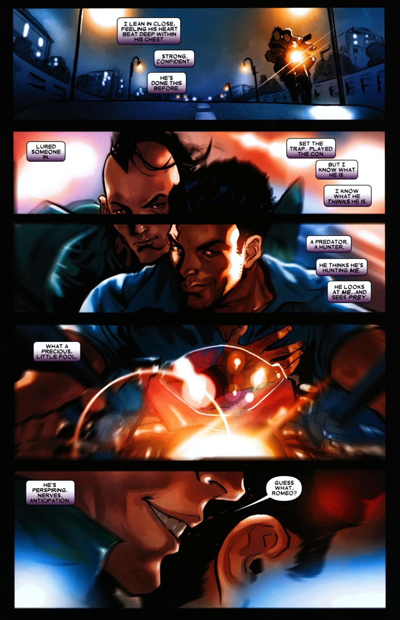 >>45790Really? I think they're very slashable if you read enough Daredevil. Especially considering DD: Noir, in which Bullseye was a woman, and Matt fell very madly in love with her.>>This makes me wonder why was Bullseye so easily rilled up by Daken's antics if he has no qualms to use tricks from exactly the same book. What's better, is the next page, where Lester goads him on with "Harder. Harder! Harder!", which I would post, but I'm preoccupied with something prettier.I'm usually rather underwhelmed with Origins, but I kind of liked this issue more than my usual. The art is gorgeous. I love it when Daken actually looks Asian.Also: oh boy, those prompts are more amusing than I ever expected. I'm not all that grand at humor, but I might give something a shot and see how it goes. I'm not sure about mpreg, though. Hahaha. I'm not that bold.