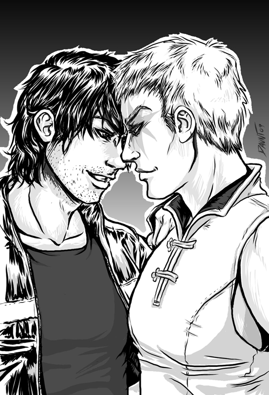 Bigger version at Y! where you can see little details like the sweat and body hair:http://yaoi.y-gallery.net/view/703460/It's not porn but hey, implication ftw?