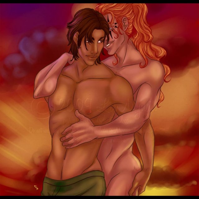 more from y!gallery http://yaoi.y-gallery.net/view/606314/Panting, Rictor reached down to brush some of the cum off his stomach as Shatterstar slid off him. There was a pause as the formerly seismic mutant looked up.“Star?” he asked.“Yes?” came the reply along with a gentle kiss to the ear.“Are those my boxers on the ceiling fan?”There was a pause before Shatterstar answered him.“Yes.”“Should have guessed they’d end up there given how fast you had me out of them,” Julio laughed. He didn’t even have to look to know there was that small smile on Shatterstar’s face. There was another long delay before anyone spoke again.“We should probably clean up here and get out of Jamie’s office before finds us on his desk,” Rictor reasoned.